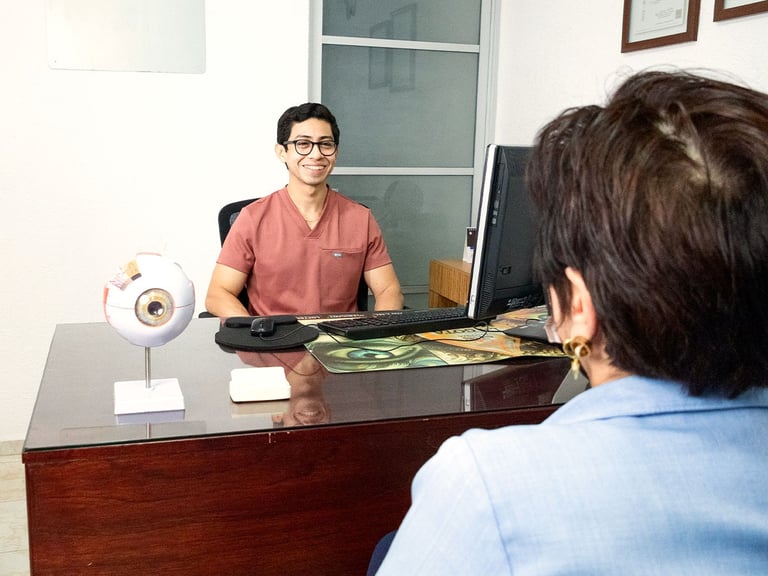 Evalúo tu salud visual de forma integral, escuchando tus síntomas y revisando tu historial para ofrecerte un diagnóstico claro y un seguimiento personalizado.